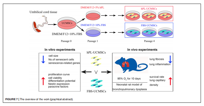 該研究證明了hPL作為UC-MSCs培養(yǎng)的補充添加物所具有的功能作用,表明其重要的臨床使用價值。這將有助于促進hPL在未來UCMSCs規(guī)?;囵B(yǎng)中的廣泛應(yīng)用,并為臨床BPD患兒的治療應(yīng)用提供更多幫助。